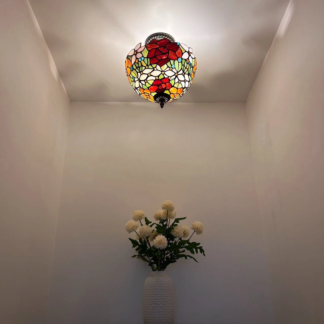 Tiffany-Style Stained Glass Ceiling Light – Colorful Mosaic Flush Mount Lamp for Hallway, Bedroom & Living Room
