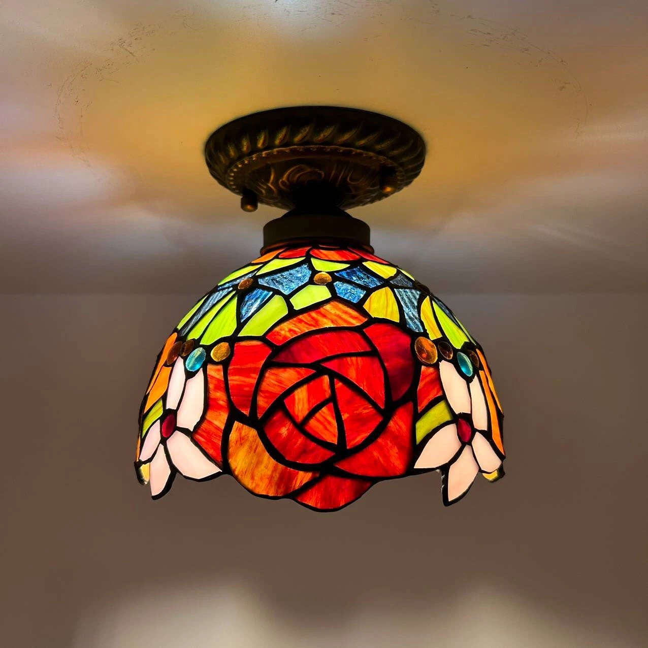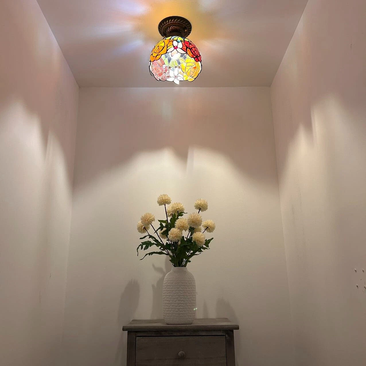 Tiffany-Style Stained Glass Ceiling Light – Colorful Mosaic Flush Mount Lamp for Hallway, Bedroom & Living Room